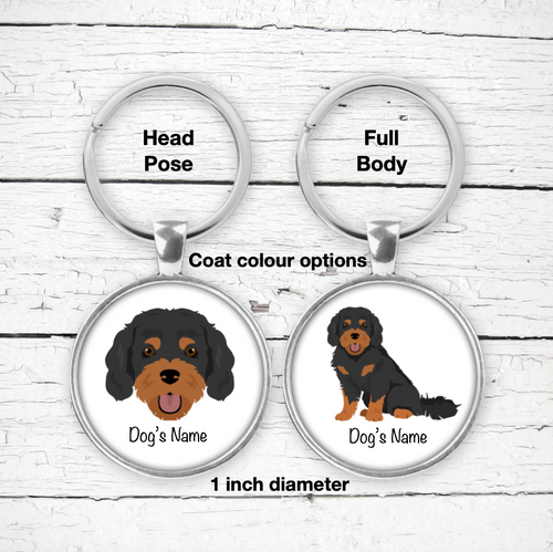 Cavapoo (Cavalier/Poodle mix) Bezel Keychain - personalized