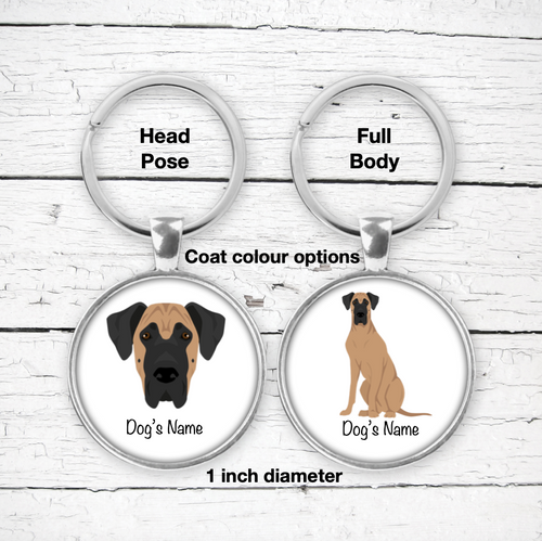 Great Dane (cropped ears) Bezel Keychain - personalized