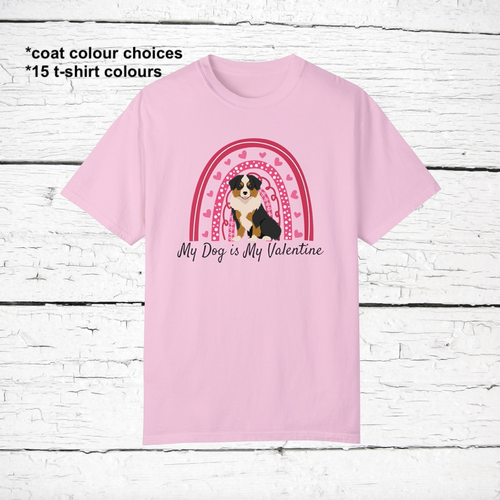 Miniature American Shepherd 'My Dog is My Valentine' 100% cotton t-shirt customized