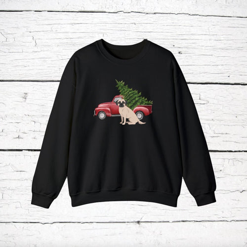Chug (Chihuahua/Pug mix) Red Truck Sweatshirt