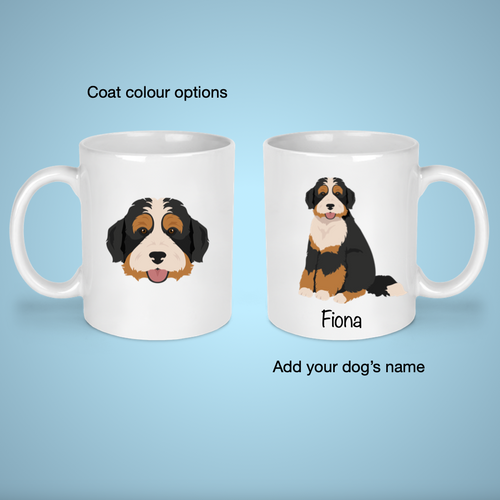 Bernedoodle (Bernese Mountain Dog/Poodle mix) 11 oz mug personalized