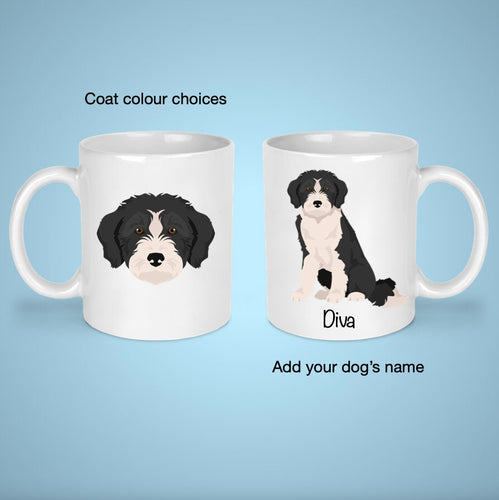 Bordoodle (Border Collie/Poodle mix) 11 oz mug personalized