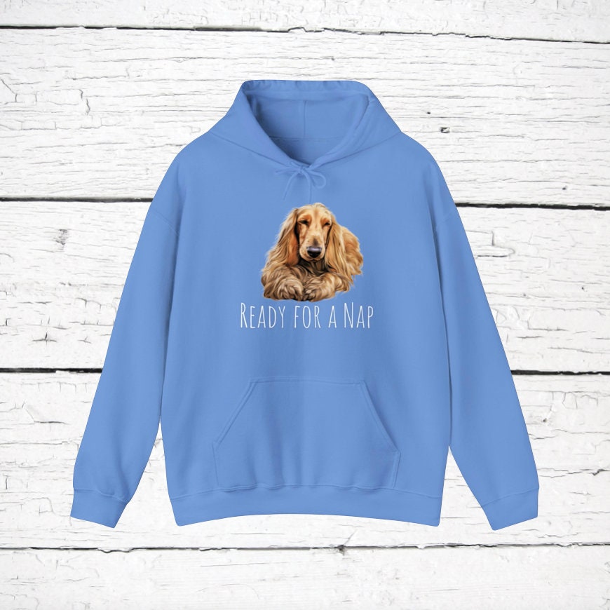 This Afghan Hound "Ready for a Nap" hooded sweatshirt is perfect to snuggle into on a cool day.