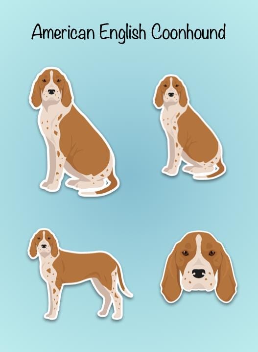 These American English Coonhound vinyl stickers are sure to bring a smile to your face.