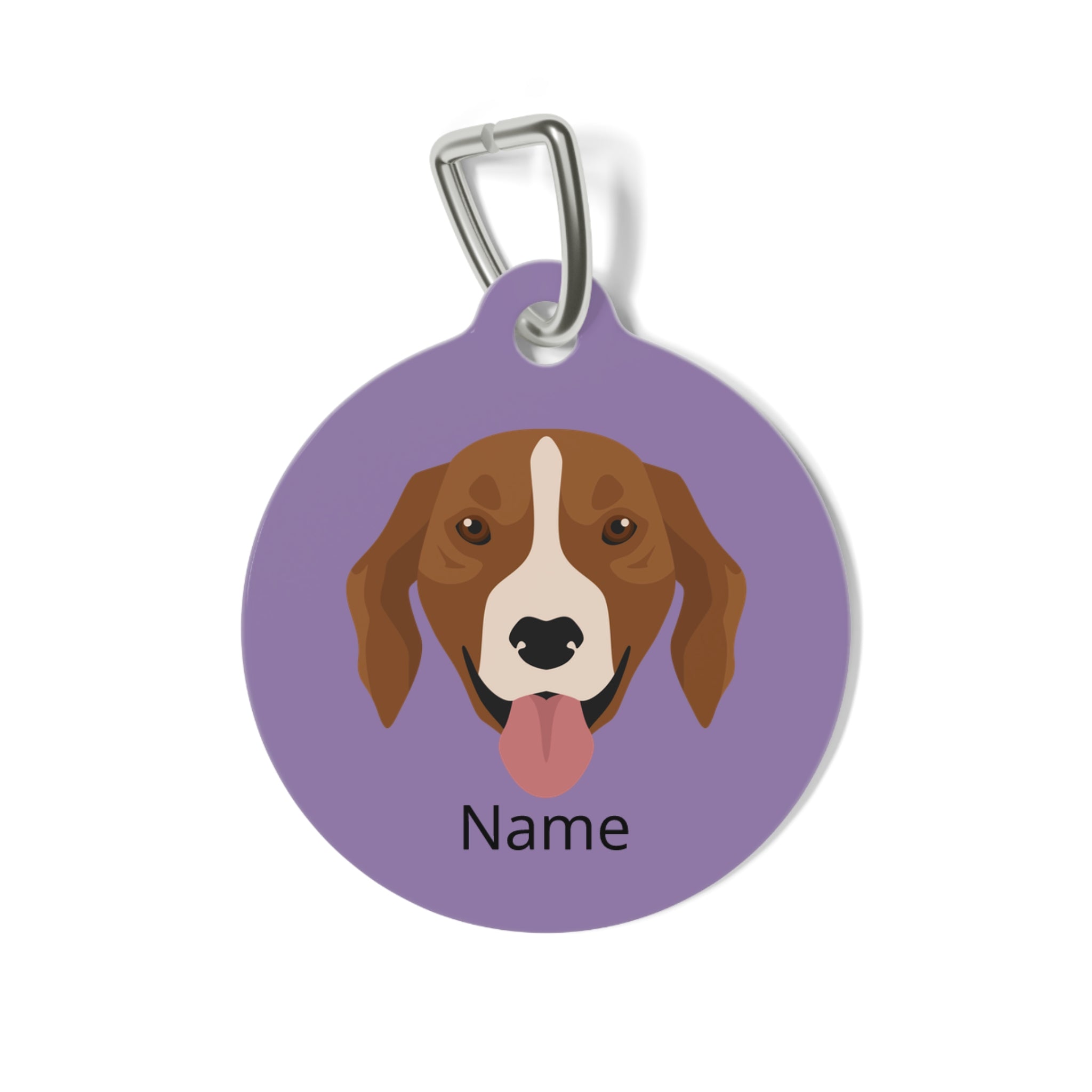 A stainless steel split V-ring is included to attach the tag to your dog's collar. The tag is 1 inch in diameter.