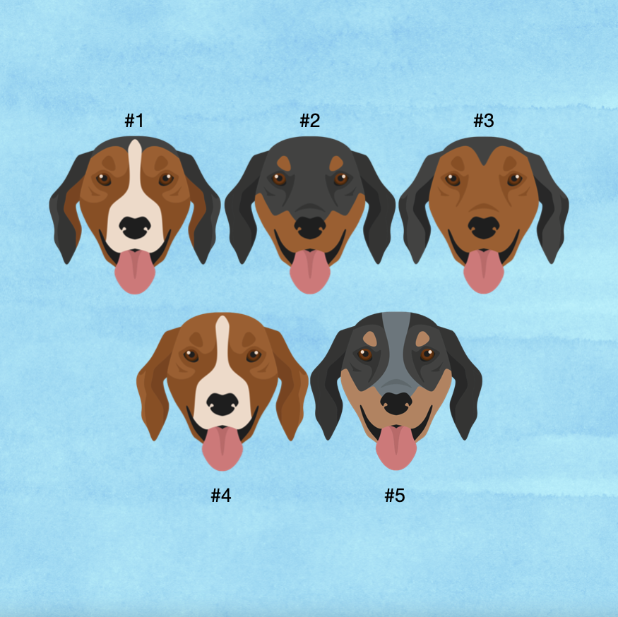 For the dog's coat colour, please leave the number/colour name in the Note to Seller, which you will find when you go the cart.