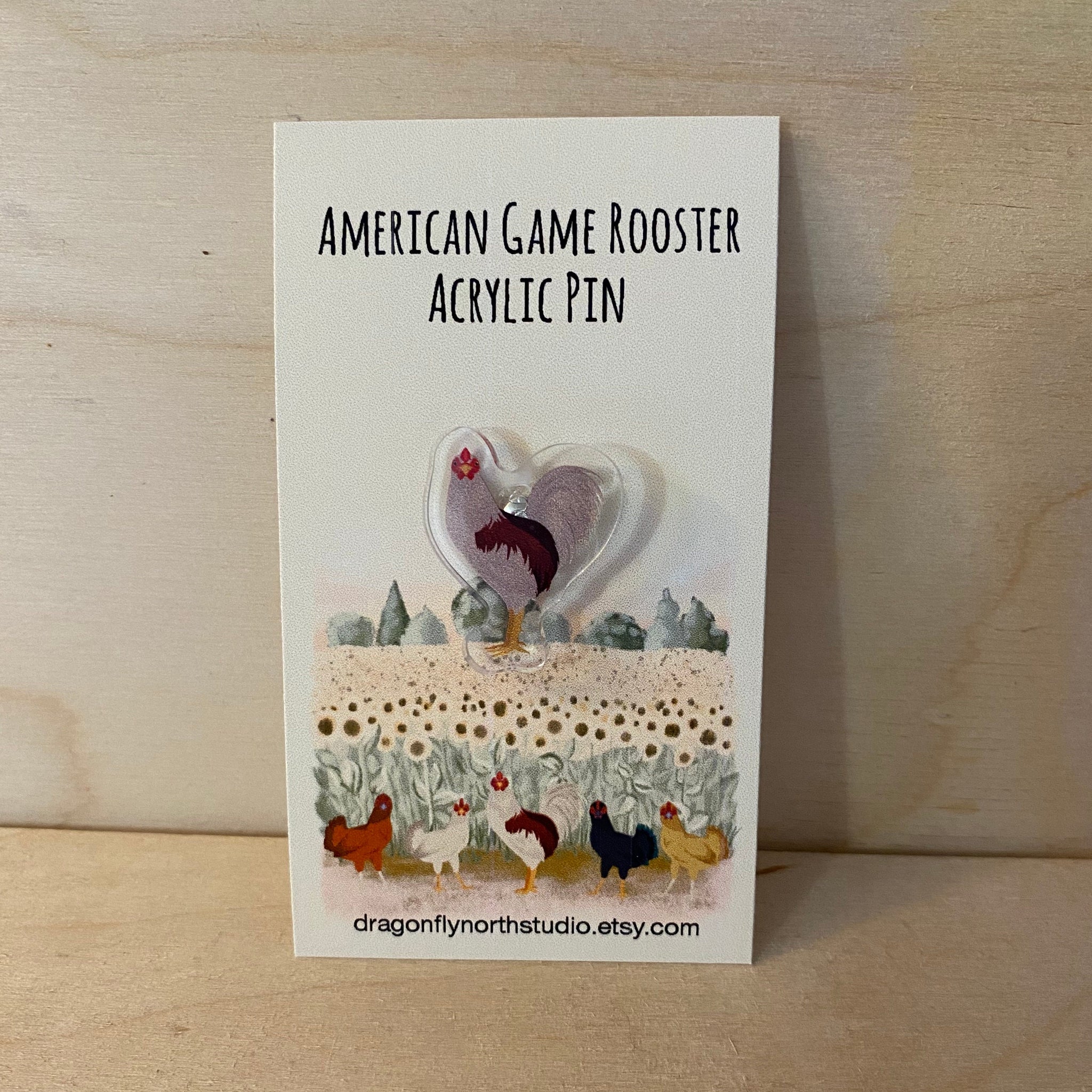 • Load image into Gallery viewer, American Game rooster acrylic pin (beige/brown )