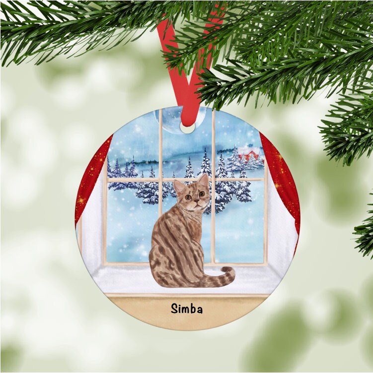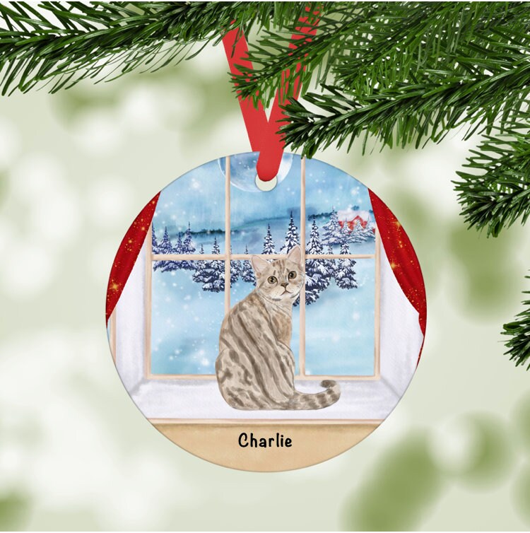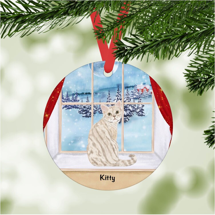 You can personalize this ornament with your cat's name. Please be sure to enter the name in the personalization option and please limit the name to one word if possible.