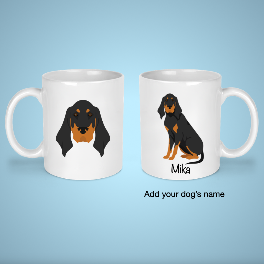 Start your day with your best friend. This Black and Tan Coonhound mug will bring a smile to your face.