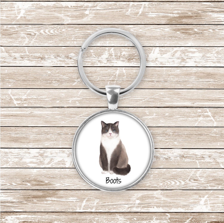 PLEASE NOTE THAT I AM ON HOLIDAYS FROM AUG 22 TO AUG 28. ALL ORDERS RECEIVED DURING THIS WEEK WILL GO OUT ON MONDAY AUG 29.This black and white cat keychain is perfect for cat lovers. The bezel tray is about 1 inch (25mm) across. The key ring is about 1.25 inches (32m). The artwork is sublimated onto an aluminum insert.