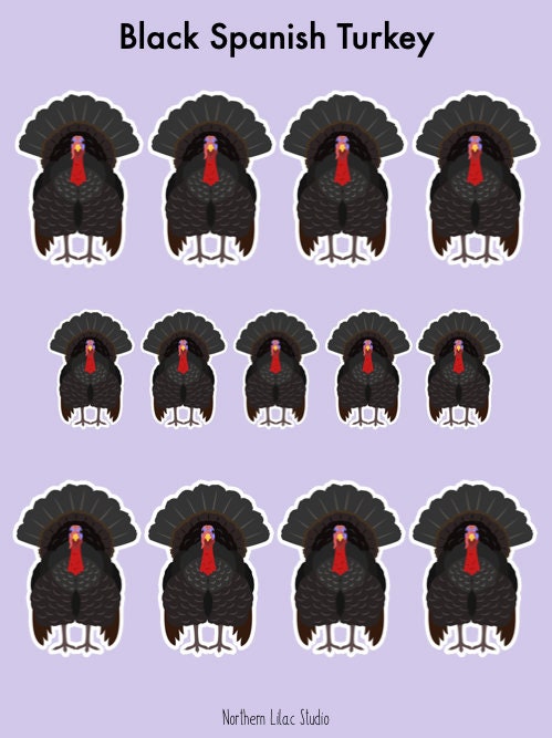 Love turkeys? Here's a sheet of turkey stickers that are perfect for putting on laptops, windows, water bottles and other clean, hard, dry surfaces.