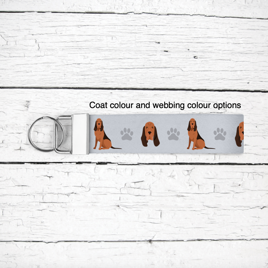 This key wristlet is available in ten background colours. Please leave a note in the "Add a note to your order' section with your colour choice. You will find this in your cart. When you are choosing the background colour, please keep in mind how well it will contrast with your dog's coat colour.