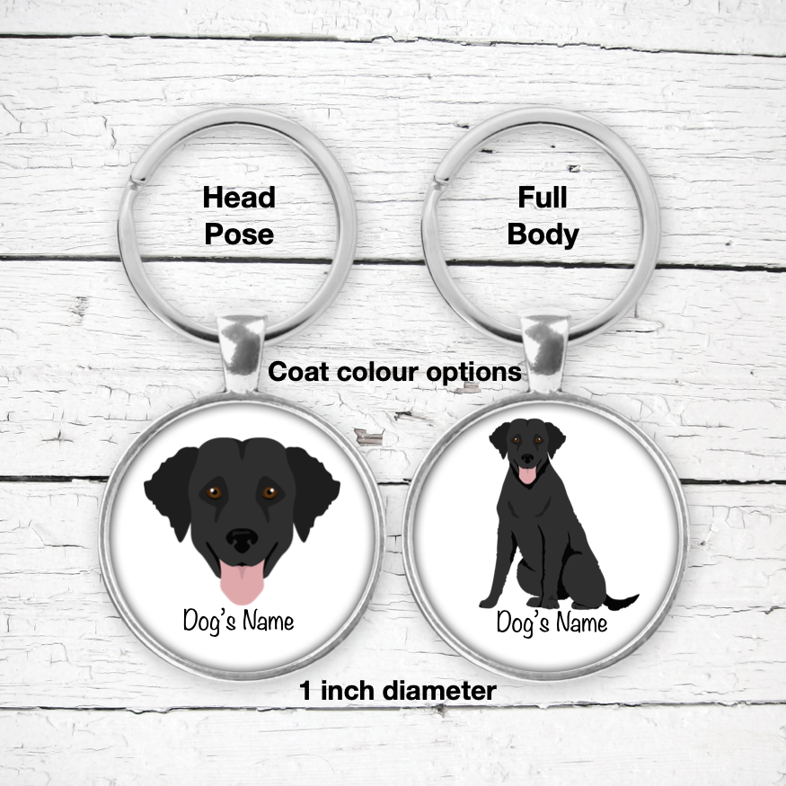 This Curly Coated Retriever keychain is perfect for dog lovers. The bezel tray and key ring are both about 1 inch (25mm) across. The artwork is sublimated onto an aluminum insert.