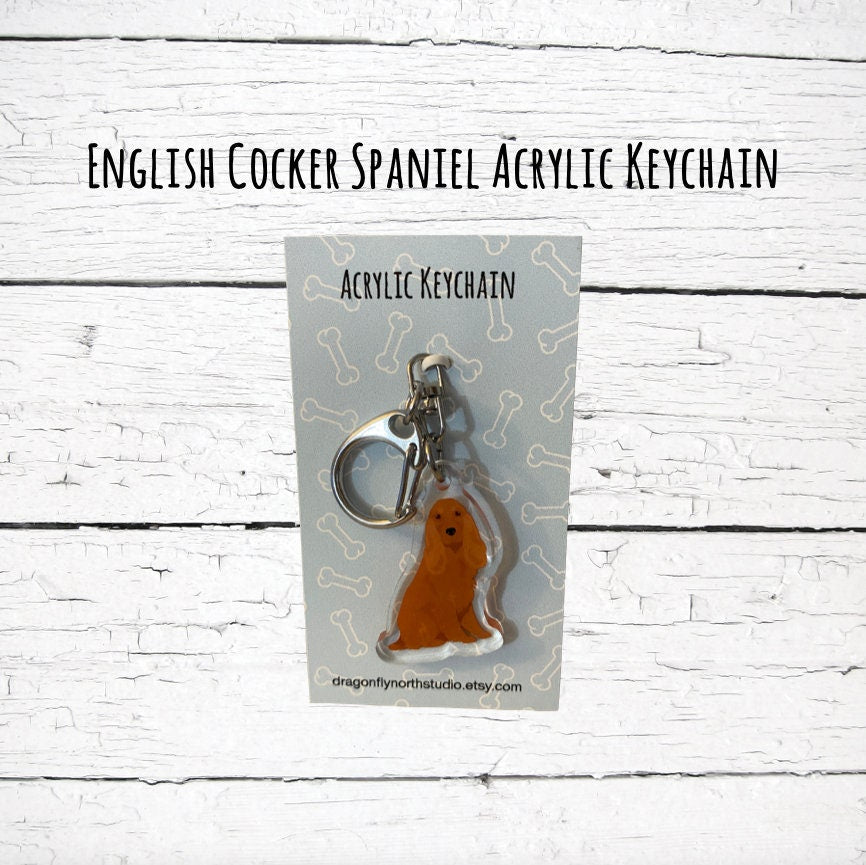 This English Cocker Spaniel UV printed acrylic zipper pull can easily be fastened by the clasp, to be used for a zipper pull or keychain attachment.