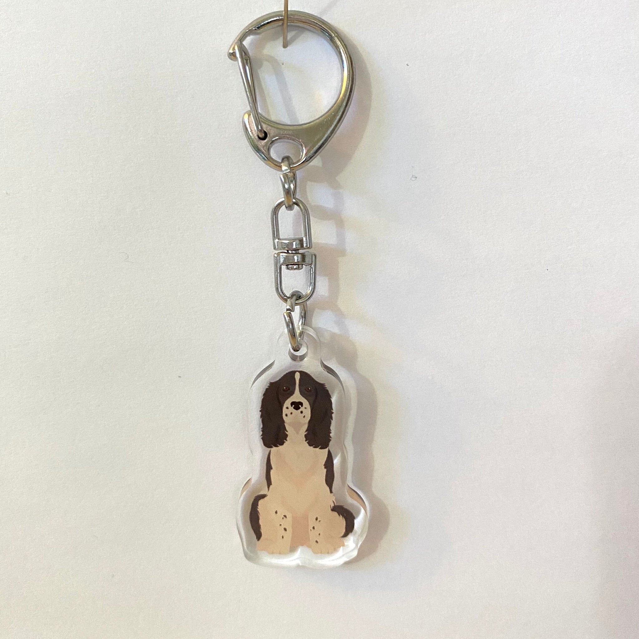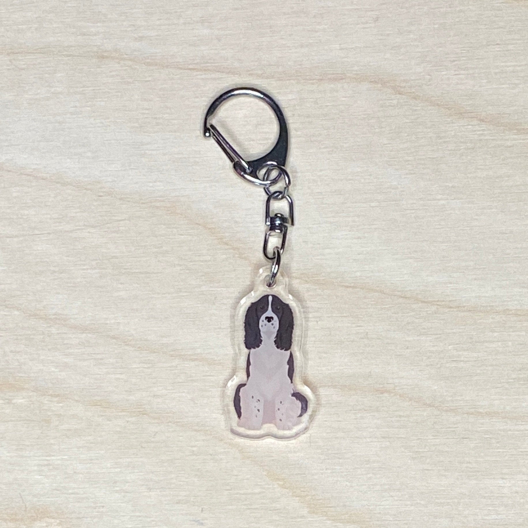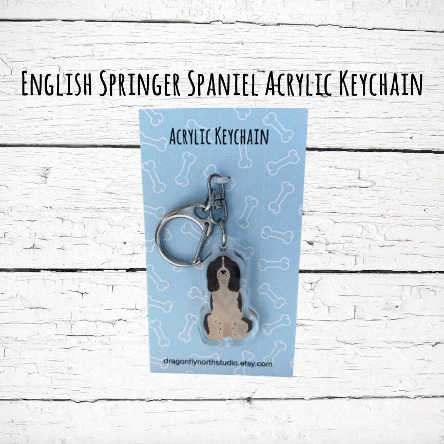 This English Springer Spaniel UV printed acrylic zipper pull can easily be fastened by the clasp, to be used for a zipper pull or keychain attachment.