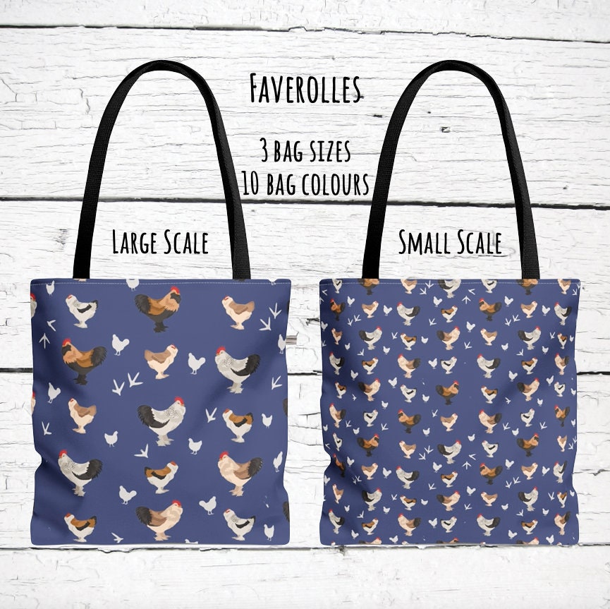 Faverolles Chicken lover's tote bag - perfect for sharing and showing off your feathered friends. This bag is perfect for travelling, going to the market or just to carry important items.