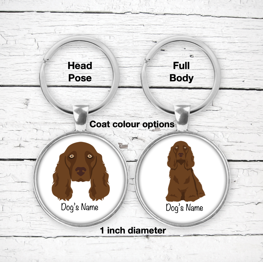 This Field Spaniel keychain is perfect for dog lovers. The bezel tray and key ring are both about 1 inch (25mm) across. The artwork is sublimated onto an aluminum insert.
