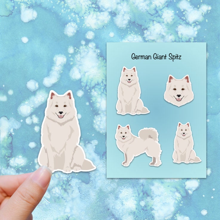 These German Giant Spitz vinyl stickers are sure to bring a smile to your face.