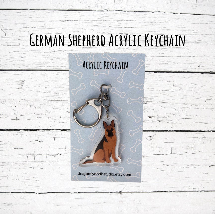 This German Shepherd UV printed acrylic zipper pull can easily be fastened by the clasp, to be used for a zipper pull or keychain attachment.