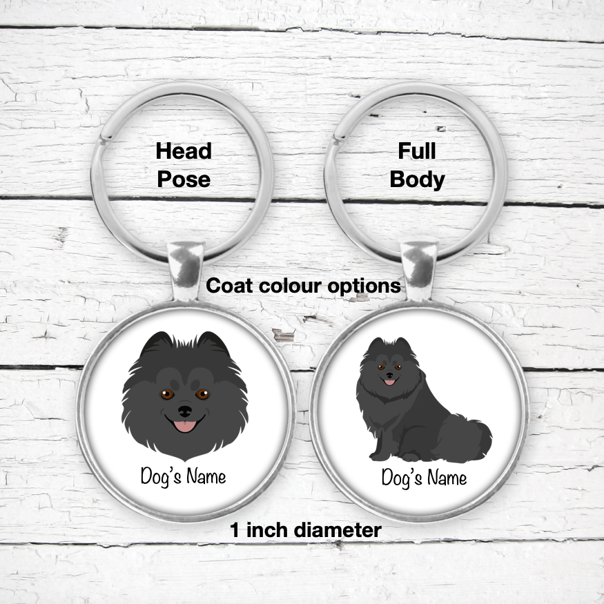 This German Spitz keychain is perfect for dog lovers. The bezel tray and key ring are both about 1 inch (25mm) across. The artwork is sublimated onto an aluminum insert.