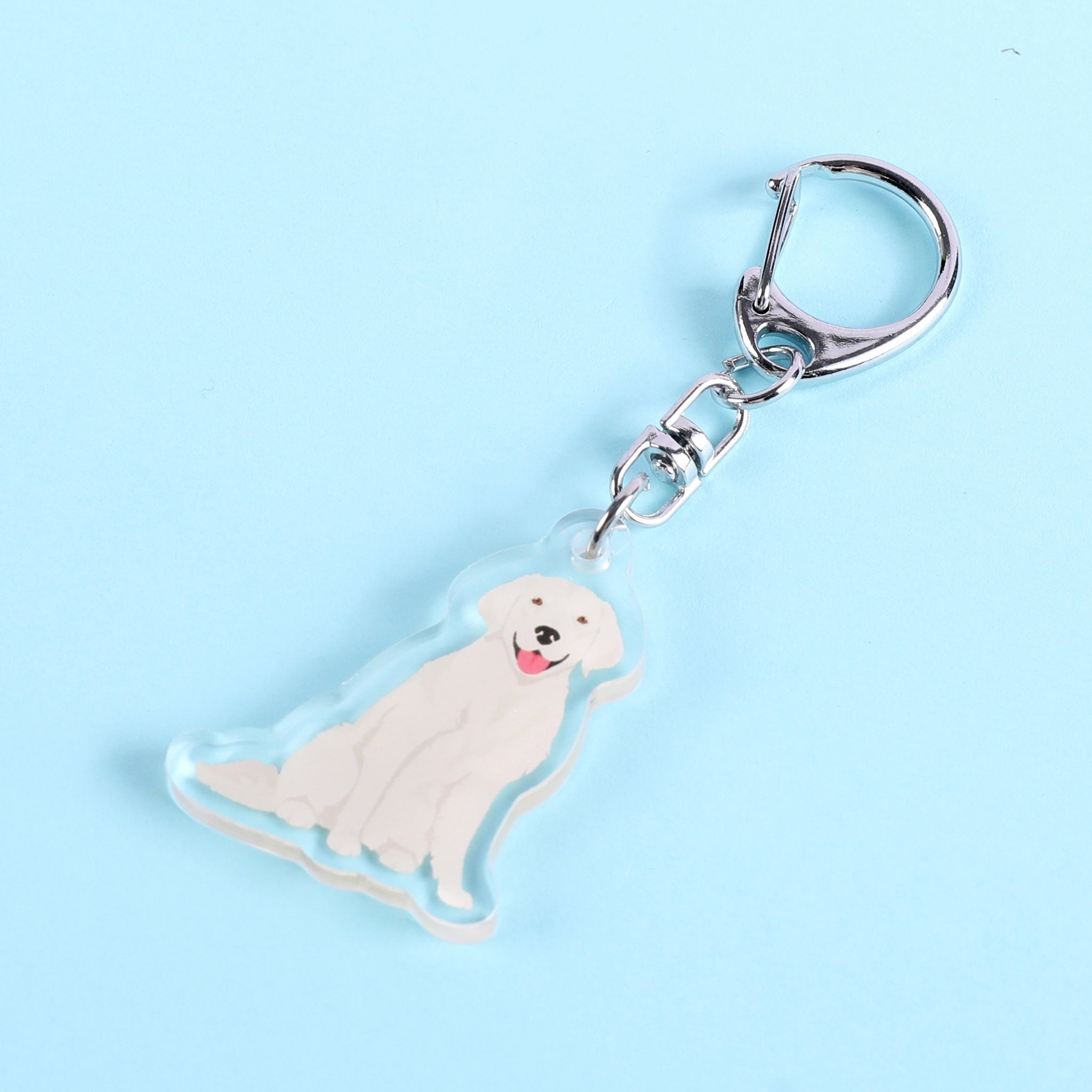 This Golden Retriever UV printed acrylic zipper pull can easily be fastened by the clasp, to be used for a zipper pull or keychain attachment.