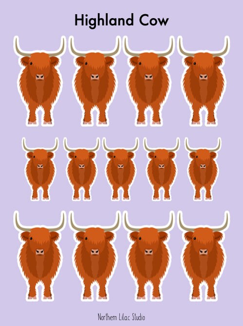 • Load image into Gallery viewer, Highland Cow vinyl sticker sheet