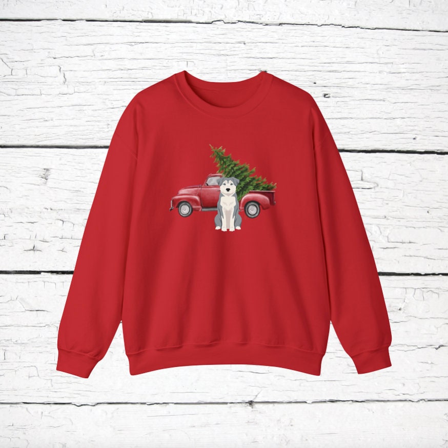 • Load image into Gallery viewer, Labsky (Labrador/Husky mix) Red Truck Sweatshirt