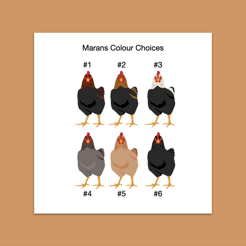 Please choose chicken colour from the Colour Choice drop-down menu, using the second picture for number reference.