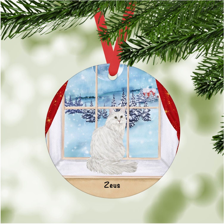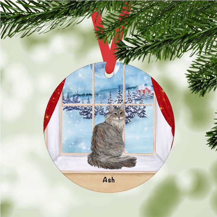 You can personalize this ornament with your cat's name. Please be sure to enter the name in the personalization option and please limit the name to one word if possible.