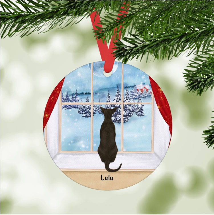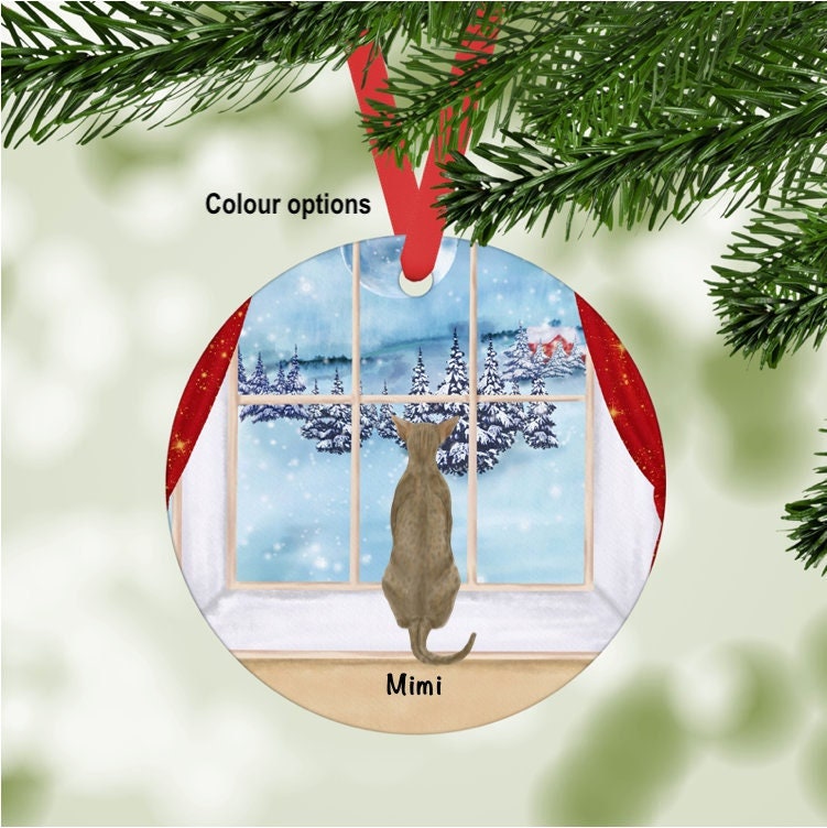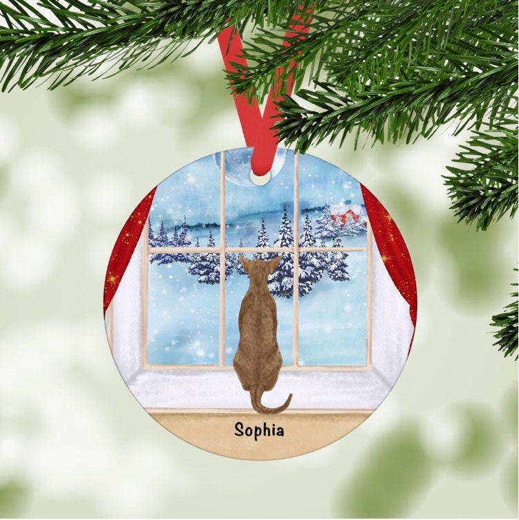 You can personalize this ornament with your cat's name. Please be sure to enter the name in the personalization option and please limit the name to one word if possible.