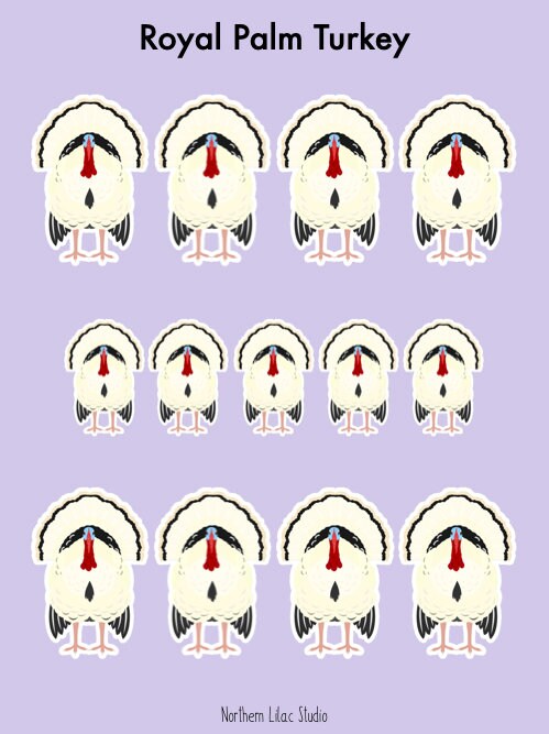 Love turkeys? Here's a sheet of turkey stickers that are perfect for putting on laptops, windows, water bottles and other clean, hard, dry surfaces.