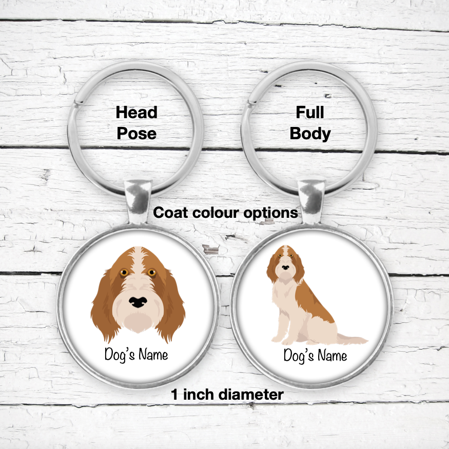 This Spinone Italiano keychain is perfect for dog lovers. The bezel tray and key ring are both about 1 inch (25mm) across. The artwork is sublimated onto an aluminum insert.