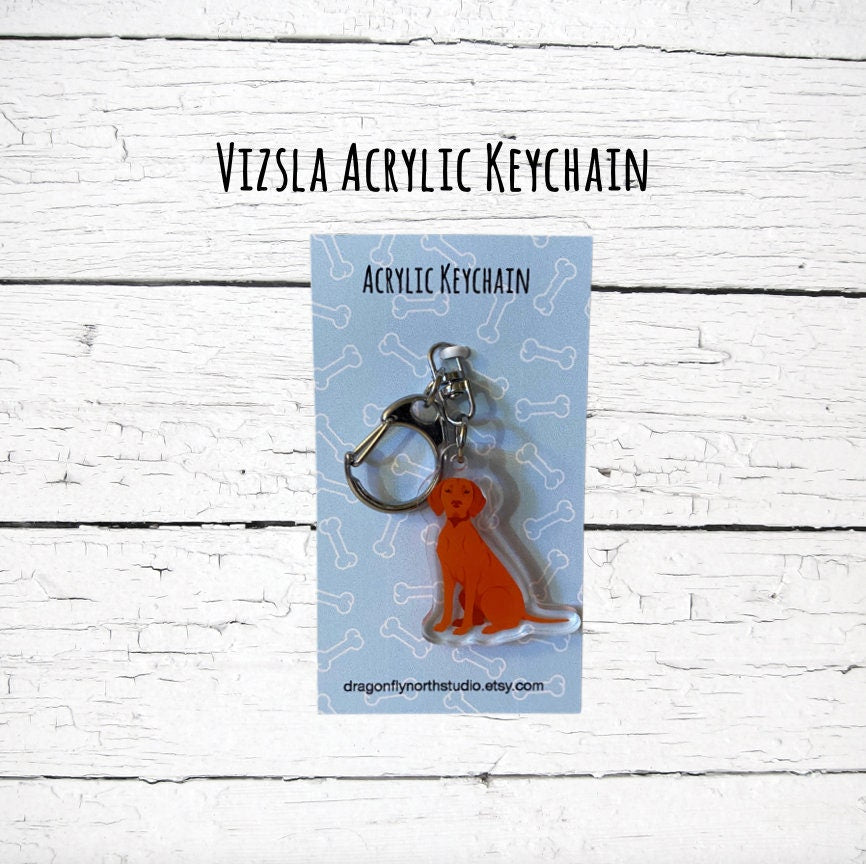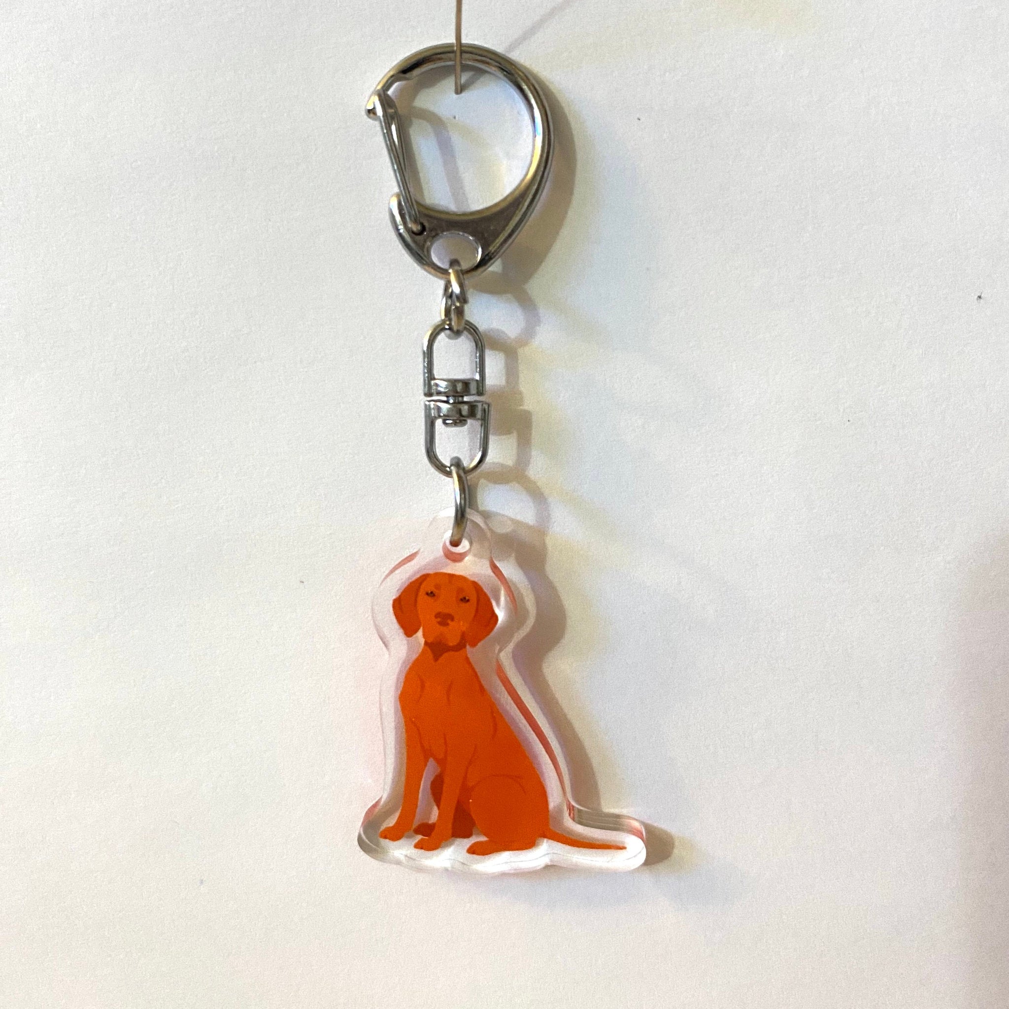 This Vizsla UV printed acrylic zipper pull can easily be fastened by the clasp, to be used for a zipper pull or keychain attachment.