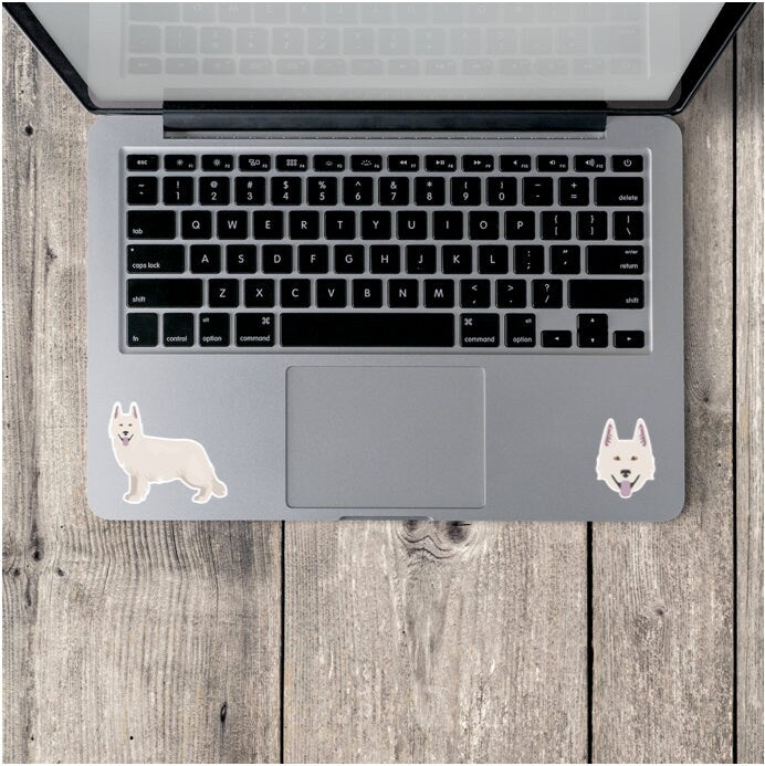 These White Swiss Shepherd vinyl stickers are sure to bring a smile to your face.